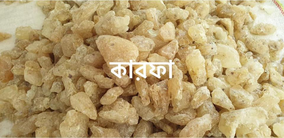 সংক্ষেপে, ছবিতে দেখানো “কারফা” বা রজন হলো একটি বহুমুখী প্রাকৃতিক উপাদান, যা আঠালো, জলরোধী এবং পালিশের কাজে ব্যাপক ব্যবহৃত হয়।
